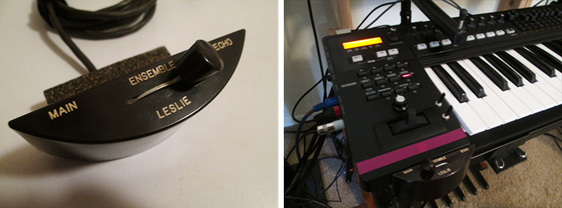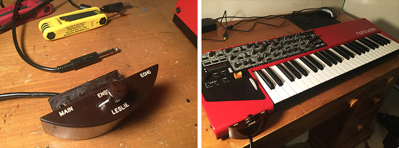 Similar to above, here we added a Leslie switch to a Nord Wave synth to control modulation depth