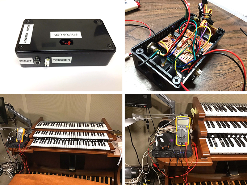 In this project we were contracted by McGill Neuro to design an organ trigger adapter for synchronization of brain monitoring experiments while performing music