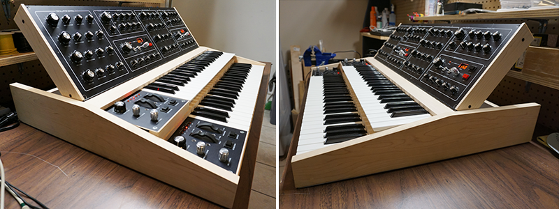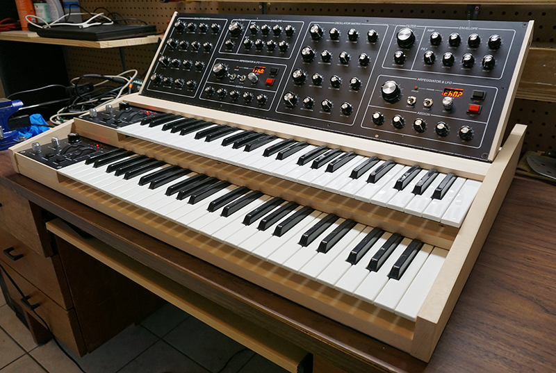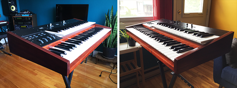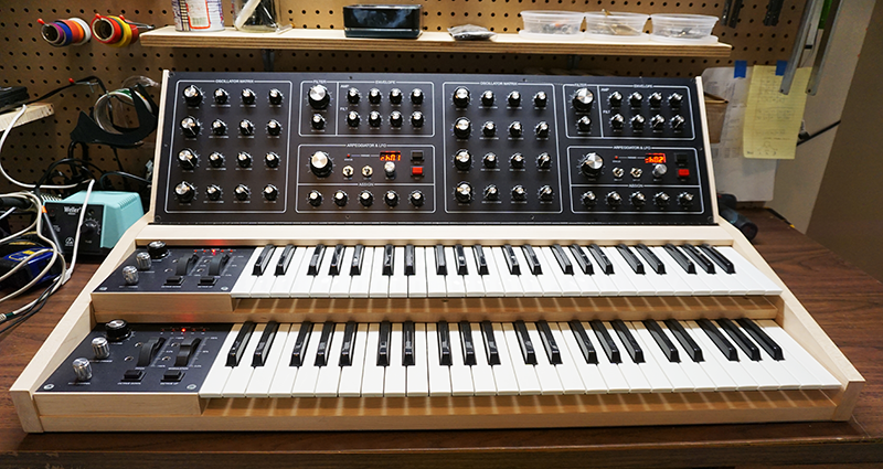 Double keyboard controller handcrafted from all maple, over 70 programmable controls, Dual left hand controllers (LHC), quick-sequencer, auto-hold function, and multi-dimensional smart-arpeggiator