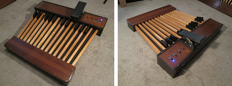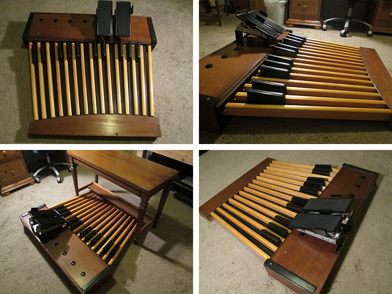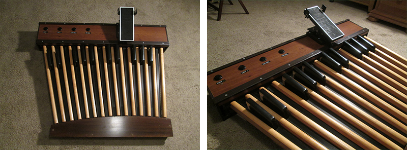 18-note pedalboard with custom range, shortened pedalboard, and extra sustain output