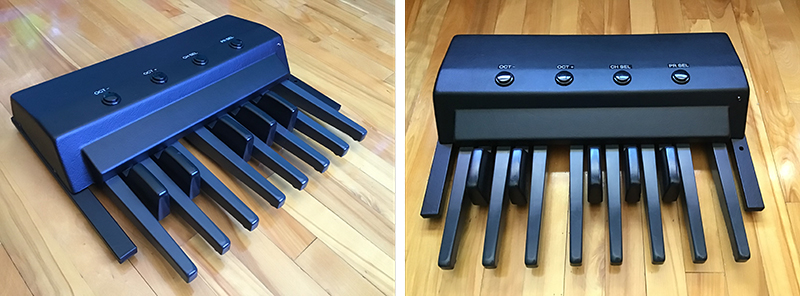 Here you will find some of the various controllers we have designed and constructed over the years, ranging from 13-32 note bass pedalboards to full keyboard style controllers all of different styles, and with different types of added controls and customizations. All of our products include standard MIDI functions including channel, program and bank select. Links to the user manuals can also be found below for selected models.